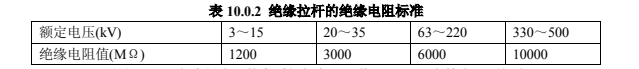 2.絕緣拉桿的絕緣電阻值,在常溫下不應低于表 10.0.2 的規(guī)定。